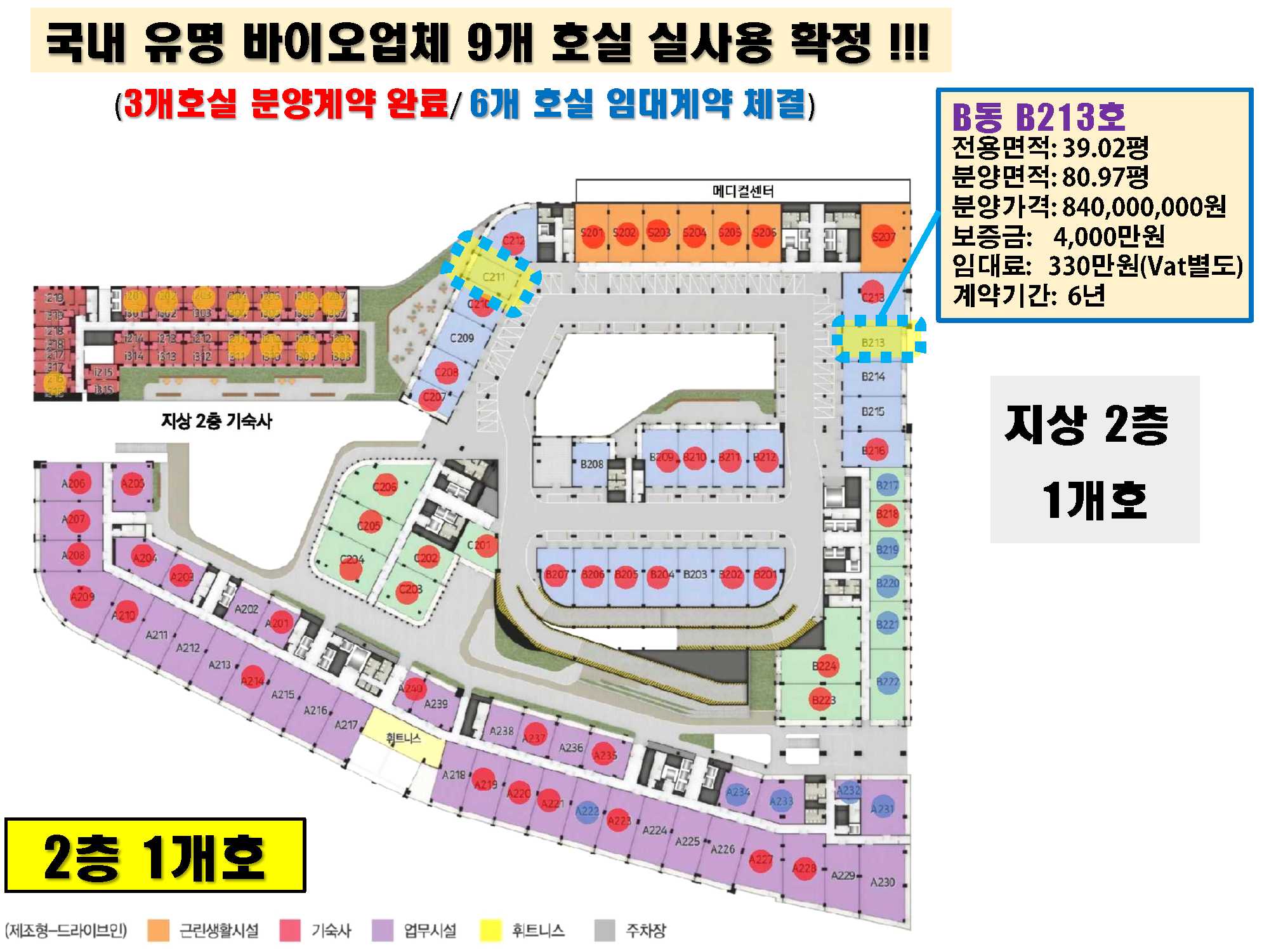 2층 바이오 업체 선임대 호실