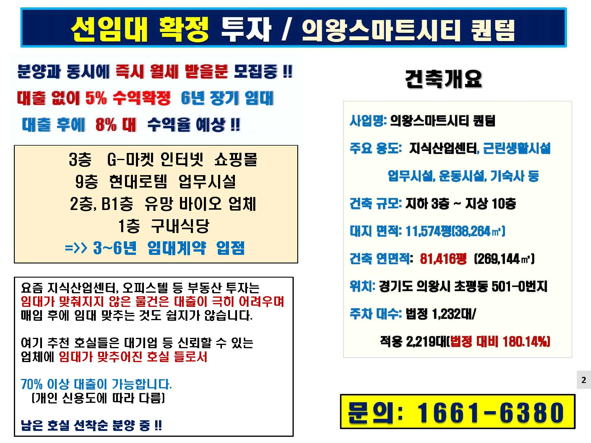 현대 로템 4년 장기 임대/ 소형 및 중형 호실/ 수익율 8%
