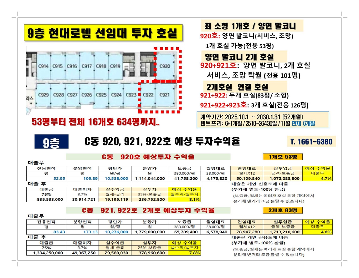 C920호 전용면적: 52.958평/ 금액: 11억 1천4백만원