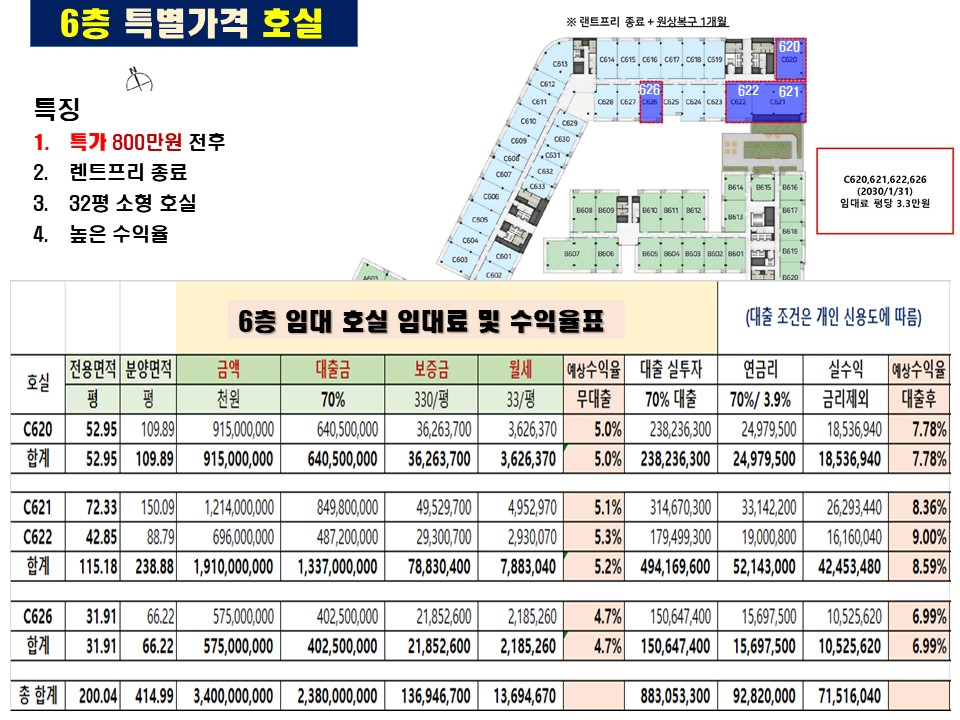 6층 4개호: 31평, 52평, 115평 특별 할인 호실